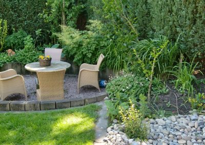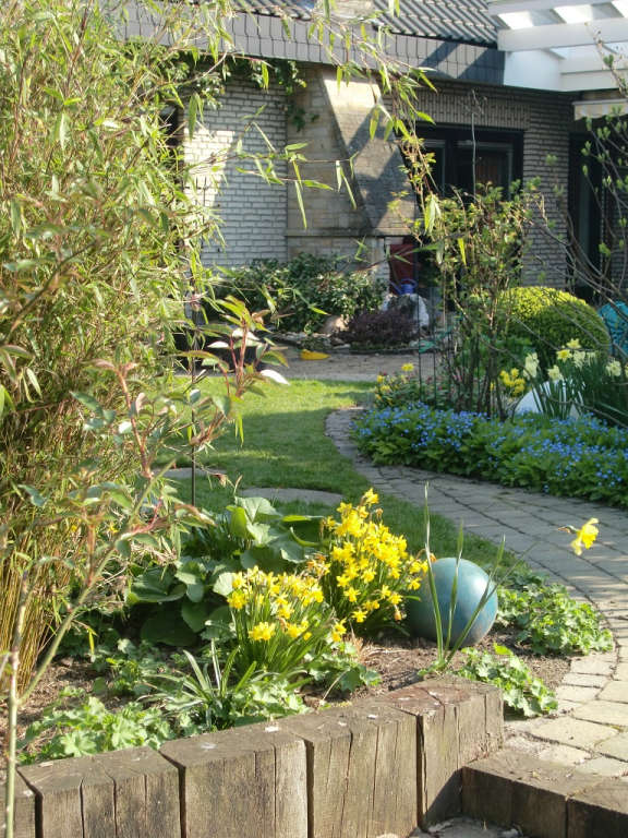 Wenn einem soviel Vertrauen, Herzlichkeit und Vorfreude entgegengebracht wird fühlt man sich richtig herausgefordert. Ein toller Garten mit tollen Menschen ist dabei herausgekommen. In 3 größeren Bauabschnitten 2004, 2007, und 2010 ist etwas richtig schönes entstanden. Der Feinschliff mit Blumenzwiebeln und Gartenlicht durfte am Ende nicht fehlen.