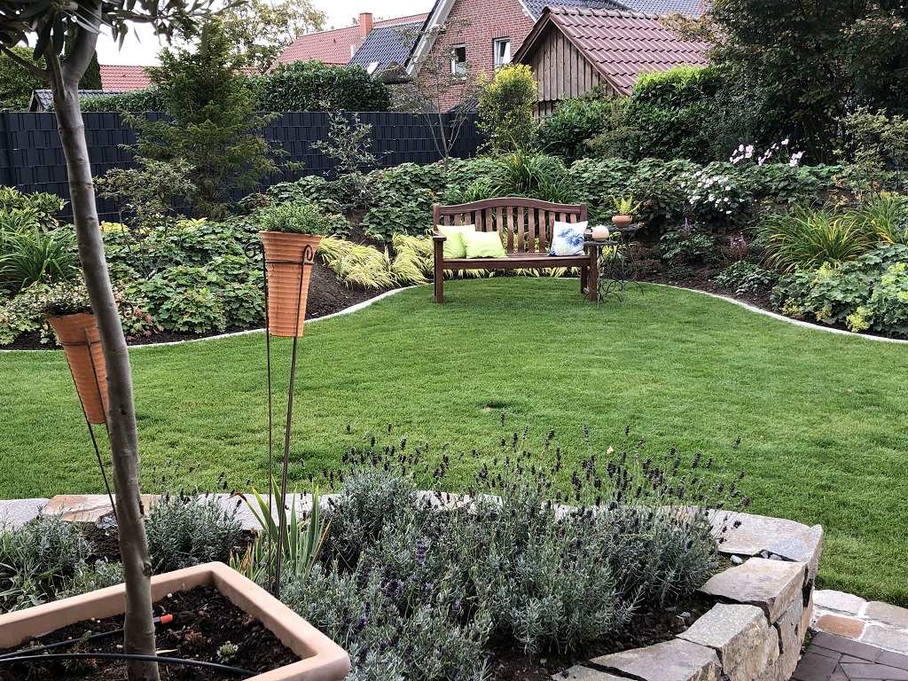 Es ist schon etwas ganz besonderes, zwei Gärten an unterschiedlichen Orten gestalten zu dürfen. Marianne und Michael haben sich nach einigen Jahrzehnten im alten Haus entschlossen neu zu bauen! Der alte Garten war und ist eine Wucht! Daher fiel die Entscheidung auch nicht leicht! Wie lange wird es dauern bis wir wieder so einen schönen Garten haben? Sehen Sie selbst! Vom Zeitpunkt der Anpflanzung Ende März zusammen mit Holger und dem Zeitpunkt wo Tony die Bilder gemacht hat sind nicht einmal 6 Monate vergangen!<span>< span=““></span><>